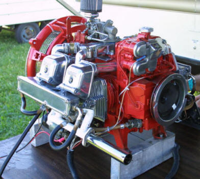 A company called Vogel's Electro Source from Milford NH, was at Airventure with a little 4 cylinder 4 stroke engine, with a dry weight of 63 lbs. The 32 cubic inch displacement engines are military standard model #4A032-4. They come complete with electronic radio frequency suppressed, waterproof ignition, with shielded spark plugs, and put out about 20 horsepower with the standard carburetor.